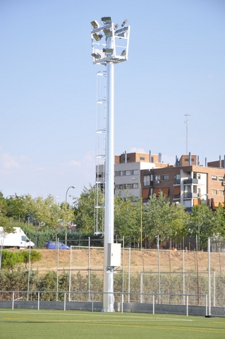Con motivo de de reformas en los campos de Futbol del Sporting de Hortaleza, instalando en las dos canchas cesped artificial de última generación, se renueva totalmente las instalaciones de iluminación de dichos campos.